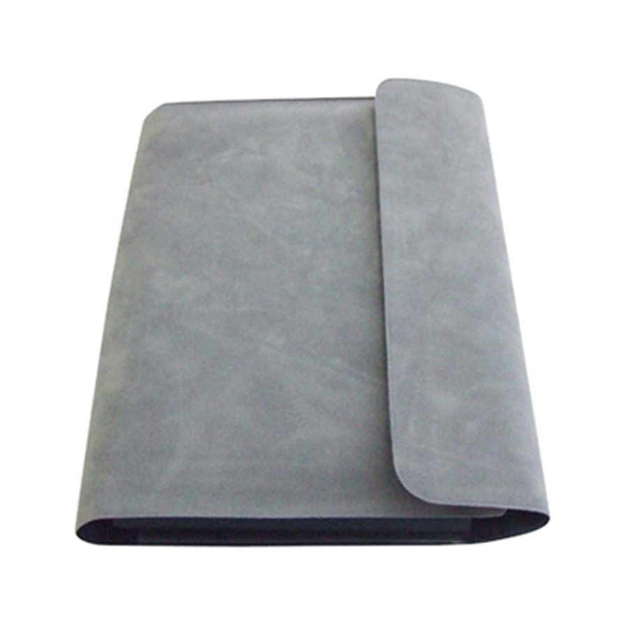 通常のPVC表面に植毛加工が施され、見た目、手触り共に非常にソフトです。巻き留めタイプで中身が落ちにくく、従来製品では不便だった持ち運びやすさ、素材を 手触りが味わえる、機能性とコスト面を両立した製品のご提案が可能になります。