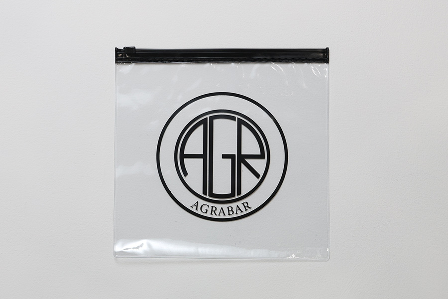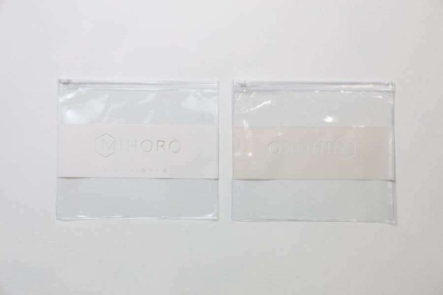 ロゴ印刷が映える透明素材を使用した、黒色ファスナー付き袋